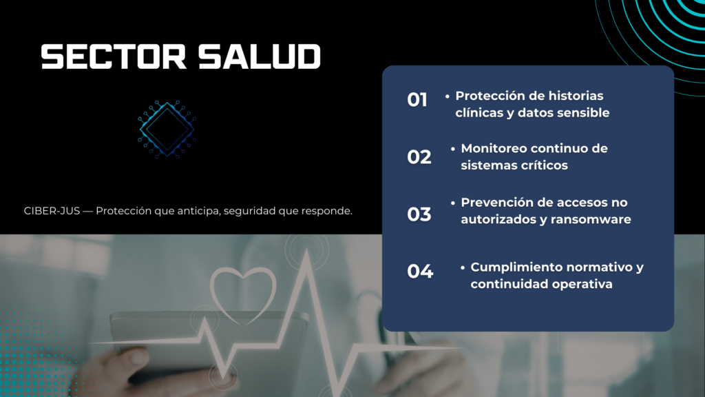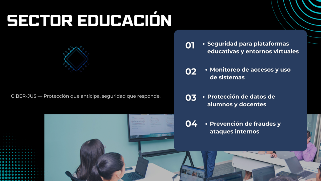 CIBER-JUS protege, monitorea y asegura datos críticos mediante soluciones avanzadas de ciberseguridad, prevención de amenazas y protección digital integral.